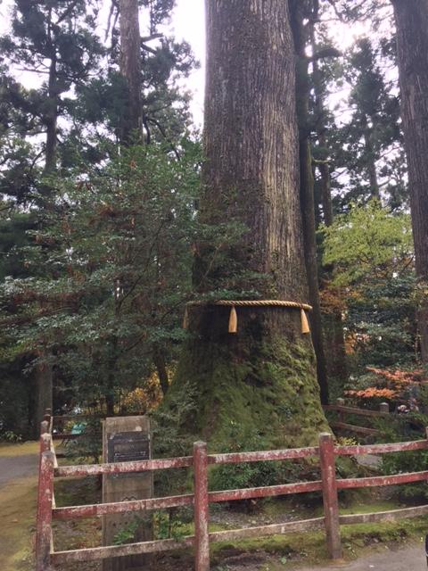 ☆見所でもある「安産杉」です。向かって右手に皆さんがお賽銭を入れる空洞があります。